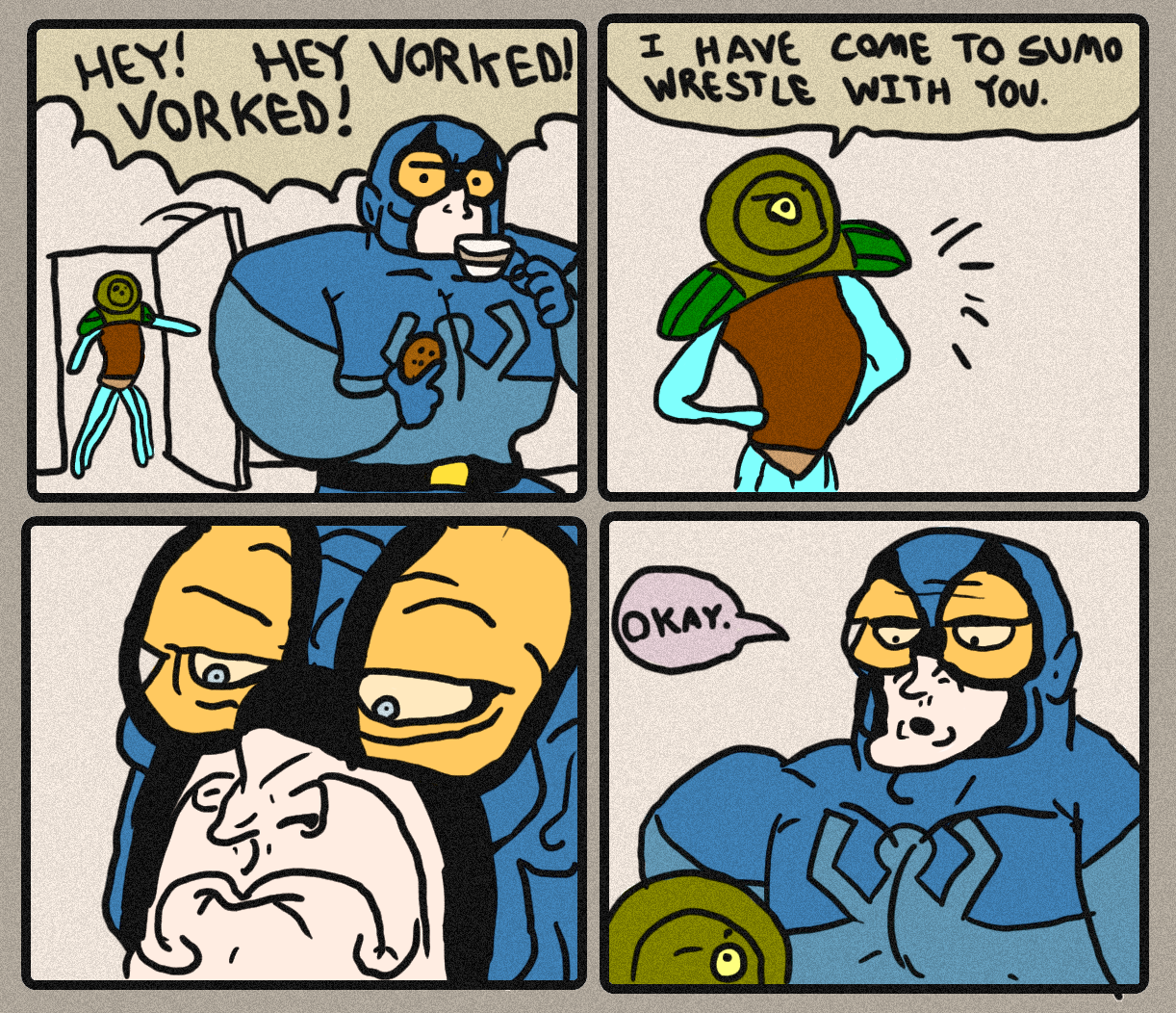 >>32114Someone writefagged some sort of story where Blue Beetle and Booster Gold pranked Thor a little too much over about a day's time.