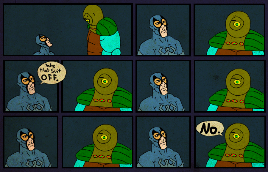 >>31433I've completely redid like five panels to make it less derp de duhr, and I am adding his FIRST VILLAINJONIX KITEMAN