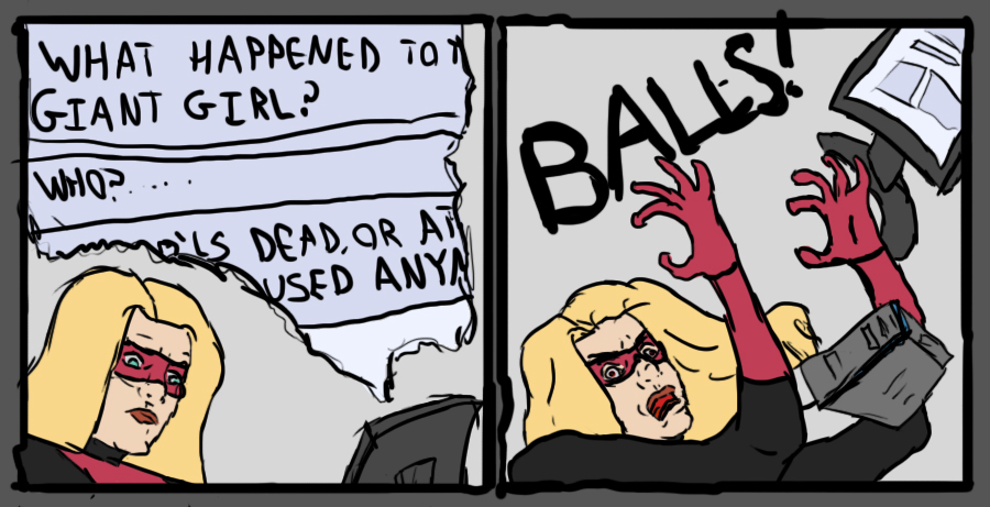 THE JOKE IS THAT GIANT GIRL ISNT USED ANYMORE AND SHE IS ANGRY BECAUSE NO ONE KNOWS WHO SHE IS