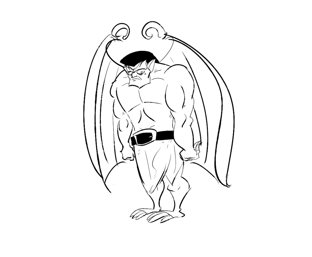 Well, if you're taking requests...How about Goliath surrounded by any other Disney Afternoon characters you want, like Scrooge McDuck or the Gummi Bears or something. Goliath should look extremely annoyed/uncomfortable, the other characters should be jolly and oblivious.