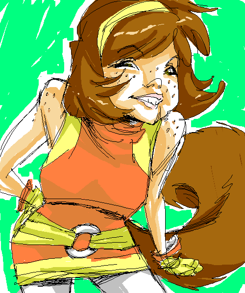 >>32542Damn. Yeah, you're right... I should have drawn her tugging at her thong straps! DURRR~