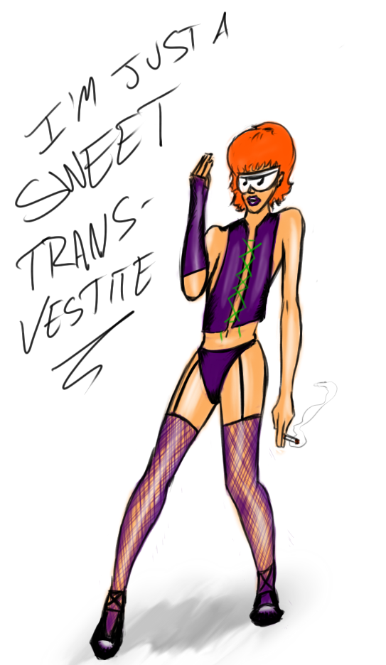 Hey, remember these things? I do. And you know what? Suddenly, we are all....CREATURES OF THE NIGHT!I figure if you can have Christmas in July, why not Halloween in June? Man in this thread you can draw:-Werewolves-Vampires- Frankensteins- Zombies- Dolphins- Devils- Faries- Pumpkin headed monsters- Ghosts- References to Rocky horror Picture Show- And all sorts of things!You all know the rules, and if you don't, then you can go fuck yourself, because I don't remember them. Now, I want a good clean jam. Let's get it on, /draw/
