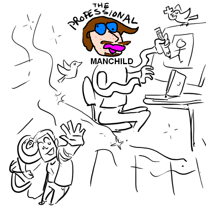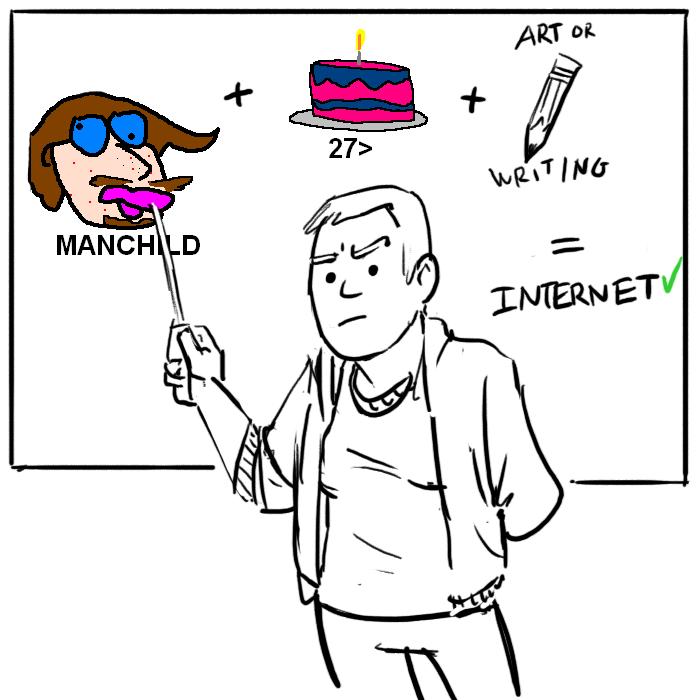 >>35833And then you get the golden crown: PROFESSIONAL MANCHILD.You feed off the energy of the manchildren around you, amassing a vast Twitter horde to do your digital bidding, gaining possible fame and unlikely fortune! But most of all, IT IS TOTALLY OKAY THAT YOU ARE ON THE INTERNET!