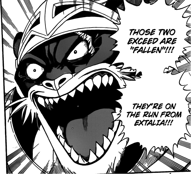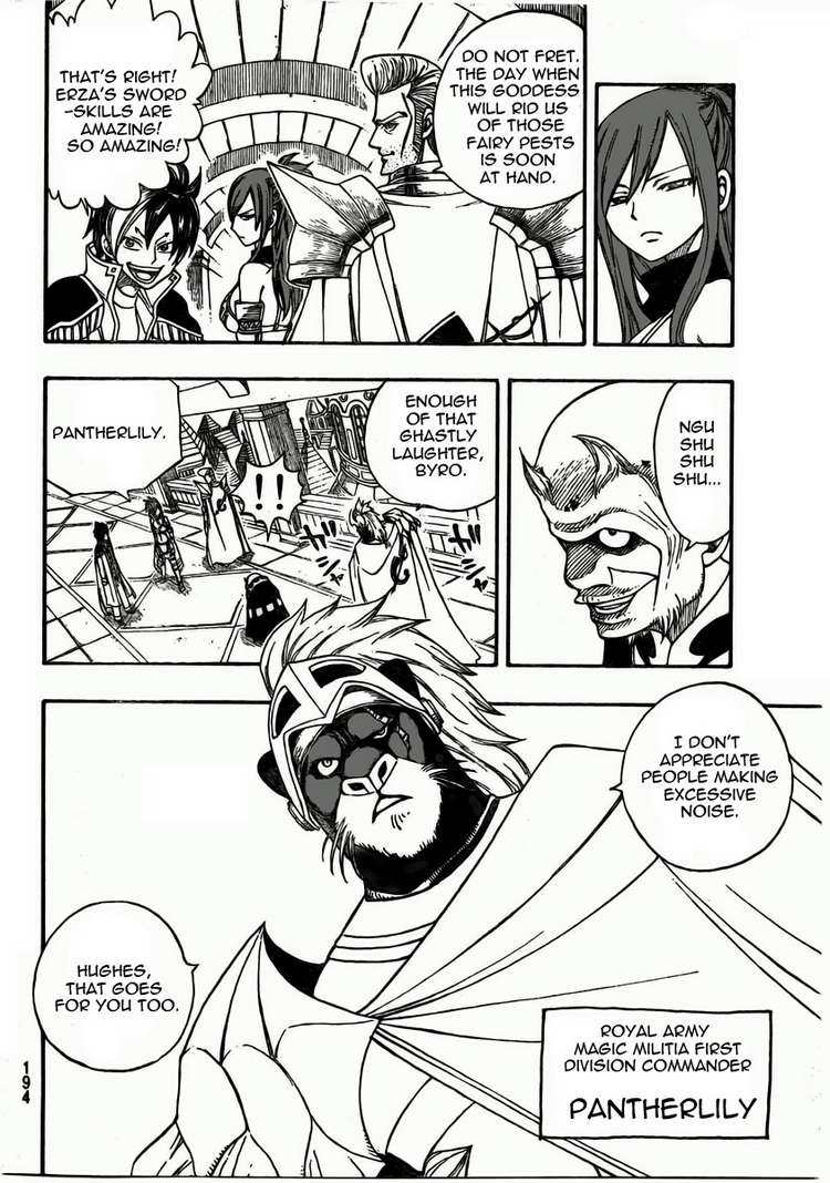 WAO~Chinese scans of 196 is out. From guesswork, the Dragon Slayers seem to pretend to the public that they stole Edolas's magic by defeating their king while Mystogan and Pantherlily argue.They also try to pose as monsters. Pic related.