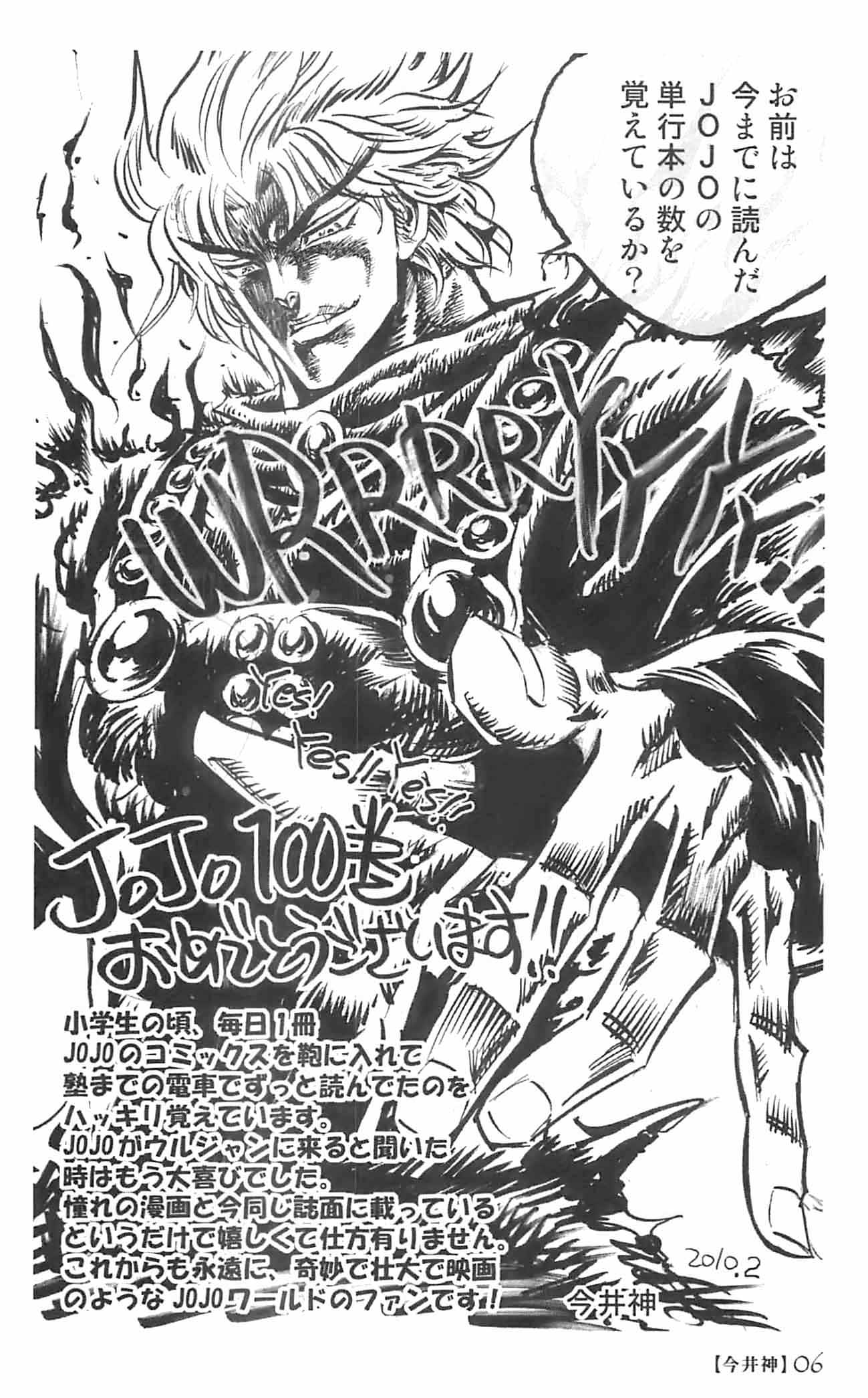 >>47327JoJo's Bizarre Copypasta on how/where to read.Parts 1-3 are on mangatraders.com or here:Part 1 - Phantom Bloodhttp://www.megaupload.com/?d=1FDBBNW8Part 2 - Battle Tendencyhttp://www.megaupload.com/?d=QEZ28TURPart 3 has an official English release from Viz, if you don't like the scans, buy that, or slap the text onto better raws yourself!Part 3 - Stardust Crusadershttp://www.megaupload.com/?d=NCGQR155Part 4's translation is just bad(and wonderful), it's being redone(slowly) here:http://donebetterelsewhere.blogspot.com/You'll have to stick with the wonderful Duwang edition for the parts that haven't been redone yet.Part 4 - Diamond is Unbreakablehttp://www.megaupload.com/?d=TXFG6W8Rhttp://www.megaupload.com/?d=U4QTOIMIhttp://www.megaupload.com/?d=IN2EHFIHPart 5 is also on mangatraders. About it's translation, it's pretty bad, just more gramatically correct than part 4's, so it doesn't seem as bad. JoJoProject is starting to retranslate/scan it. Redone volumes will be with the 6 and 7 scanlations.Part 5 - Golden Windhttp://www.megaupload.com/?d=4NSZYLTXhttp://www.megaupload.com/?d=EW77Z1I6Parts 6 and 7 are here:http://www.mediafire.com/jojoproject#Status updates on Part 7, so you don't have to scream SCANS WHERE all the time:http://shizukajoestar.blogspot.com/