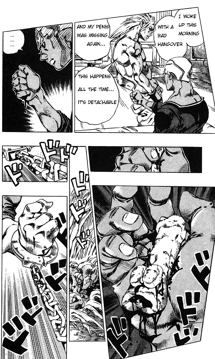Well would you look at that! For once I'm not writing about delays!This chapter is short, sweet, and delightfully confusing. It's like spicy chocolate. You'll be trying to piece together the events on the streets of Philadelphia for weeks. Who is the Steel Ball Run shadow man villain? What is Wekapipo doing? Where is Dio? And what on earth is up with Disco and his crazy Stand? Read it, enjoy, and try to puzzle it out without resorting to spoilers!Mediafire - http://www.mediafire.com/?mjmiznkzodmsendspace - http://www.sendspace.com/file/eivbykmegaupload - http://www.megaupload.com/?d=33HQIJVQAnd as always, back chapters are at http://www.mediafire.com/jojoproject if you need to catch up. You can also find past releases, FAQs, and contact info at the JoJo Project blog, shizukajoestar.blogspot.com.