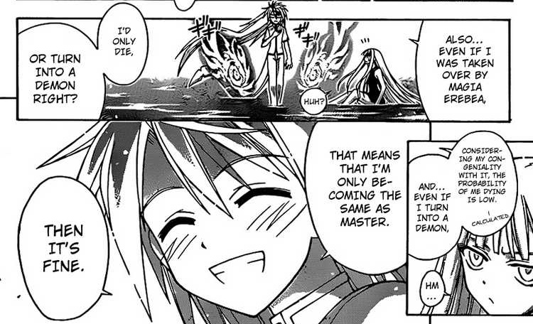 What I like about Negima is the good exposition and development every character gets. Also, because Chisame is always caring for Negi...