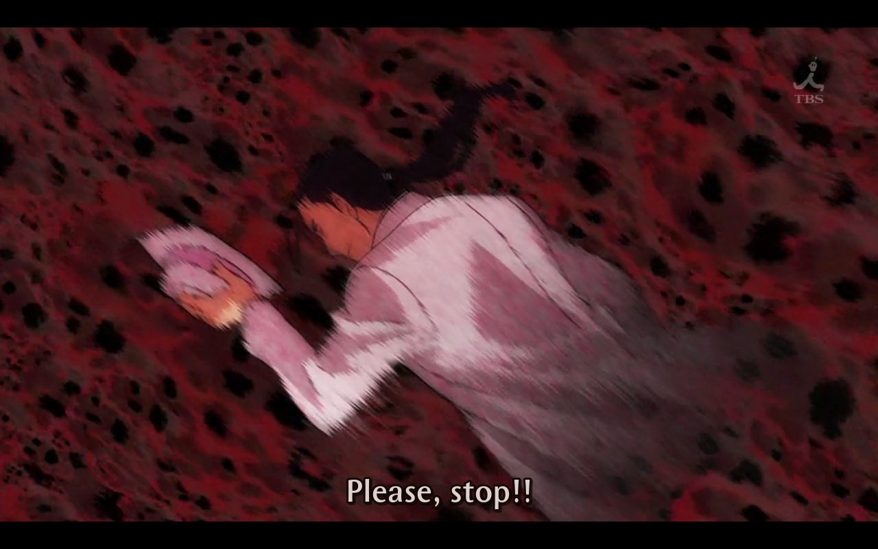 Holy crap, just watched last Saturday's episode. The anime made that fight a LOT more brutal than the manga.Also, damn, but FUNimation voice actors can scream in agony.