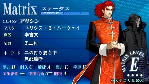 New Berserker: Lu Bu (DO NOT PURSUE, seriously, you can choose to at least one, instant DEAD END, I lol'd)NP: God ForceMaster: Rani VIII, Atlas alchemistServant Pirate Rider: Sir Francis Drake (genderswapped)NP: Golden Wild Hunt (The Golden Stag and the Stormy Night (heck yeah drill fleet and multiple EX rannks gets jobbed terribly anyway)Master: Matou ShinjiServant Dolljoints Caster: Nursery Rhyme (yeah, like the incarnation of all, but focuses on Alice in Wonderland, don't question it)NP: Queen's Grass Game, Jabberwock, The Forest of No NameMaster: AliceNew Assasin: Li Shuwen ( Li Shuwen, a legendary martial artist and practicioner of Bajiquan, which leads to a million other martial arts schools and developements)NP: Hollow Double Strike(?)Master: "Kuzuki", a fake name. Real name is Julius Belkisque HarwayNew Evil Lancer: Vlad Tepes Dracula IIINP: Kazickli Bei (the impaling king in Hungarian)Master: Ran Roo-kun (the evil clown from the trailer)Berserker-2: Arcueid BrunstudBerserker Mad Rage active, hence she is Warcueid-mode. Has all Warcueid's arcs and final arcs as Noble Phantasms. Fucking moon comes down and kills you.Master: Gatou something or other (don't know how to read the kanji, he looks like a wandering Mexican monk, the guy mistaken for a "Cowboy" in the original long trailer, not a cowboy hat but one of those Raiden hats)When you defeat Arc her Master still dies but she does not, she unBerserkers, becomes normal happy Arc, makes friends with you and asks to fight again someday, and hops in a dimensional portal to go back to Shiki.It was the real Arc all along.