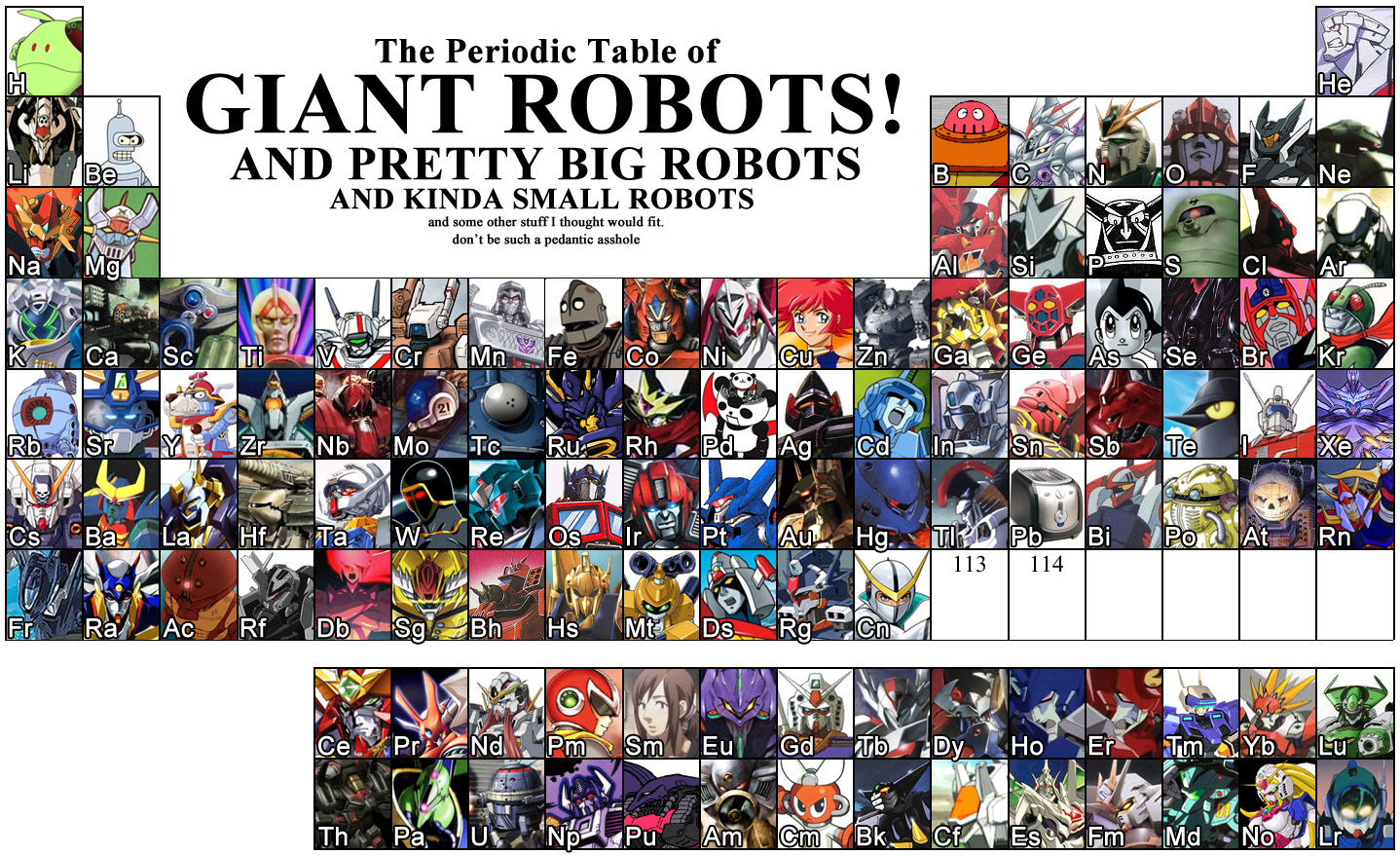 >>49549The periodic table of the chemical elements contains 118 elements, each one labeled by one or two letters that serve as an abbreviation of its name. This table has replaced the elements with anime/manga characters whose names correspond with these letters. For example, H normally stands for hydrogen, but here it stands for Haruhi Suzumia.It's a relatively clever idea and would be a lot cooler if "Japanese characters" wasn't apparently code for "kawaii moe girls." It's obvious that whoever made this had a theme in mind.