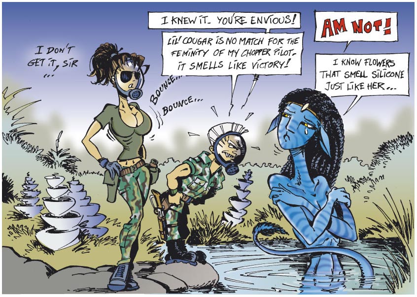 Los Angeles - Did you ever think the highest-grossing film "Avatar" will be the subject of a pornographic movie? It now has. Hustler announced that they will be releasing a porno version of James Cameron's hit film this autumn.Since its release in December 2009, “Avatar” generated $750 million in ticket sales in the United States, became a video game, Na’vi garment and skin were used as props during demonstrations across the globe and World Wrestling Entertainment superstar Rey Mysterio dressed up as a Na’vi during his Wrestlemania 26 match against CM Punk.Well, now the highest-grossing motion picture will be the subject of a pornographic film. According to Worst Previews, Hustler announced on Friday that they have concluded principal photography for their upcoming porn parody of the film titled “This Ain't Avatar XXX 3D.”Hustler has stated that they used the most sophisticated technology available to produce this film. The adult house company has also released its cover for the DVD/Blu-ray cover that will be released in September. The Na'vi race used their hair to connect with nature, one must wonder how they will have sexual intercourse.http://www.digitaljournal.com/article/293620