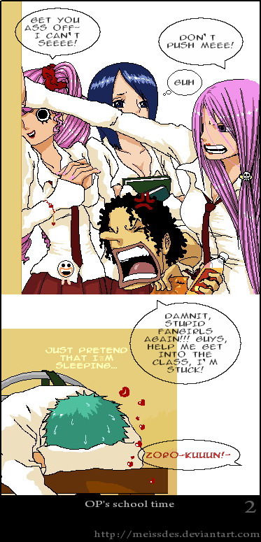 >>527Well, I guess because the official one is driven more by the Rule of Funny than anything else. I mean, from a logical standpoint Franky and Robin would be faculty members rather than students and everyone would behave a lot more like they do normally rather than being 100% stereotypical troublemakers (or bookworms, in Luffy's case).Anyway, preventing thread derailment with a not-sure-if-want OTP.