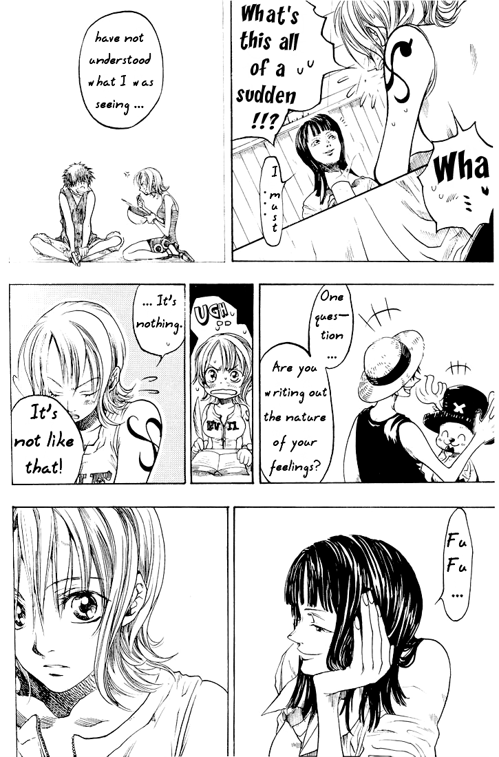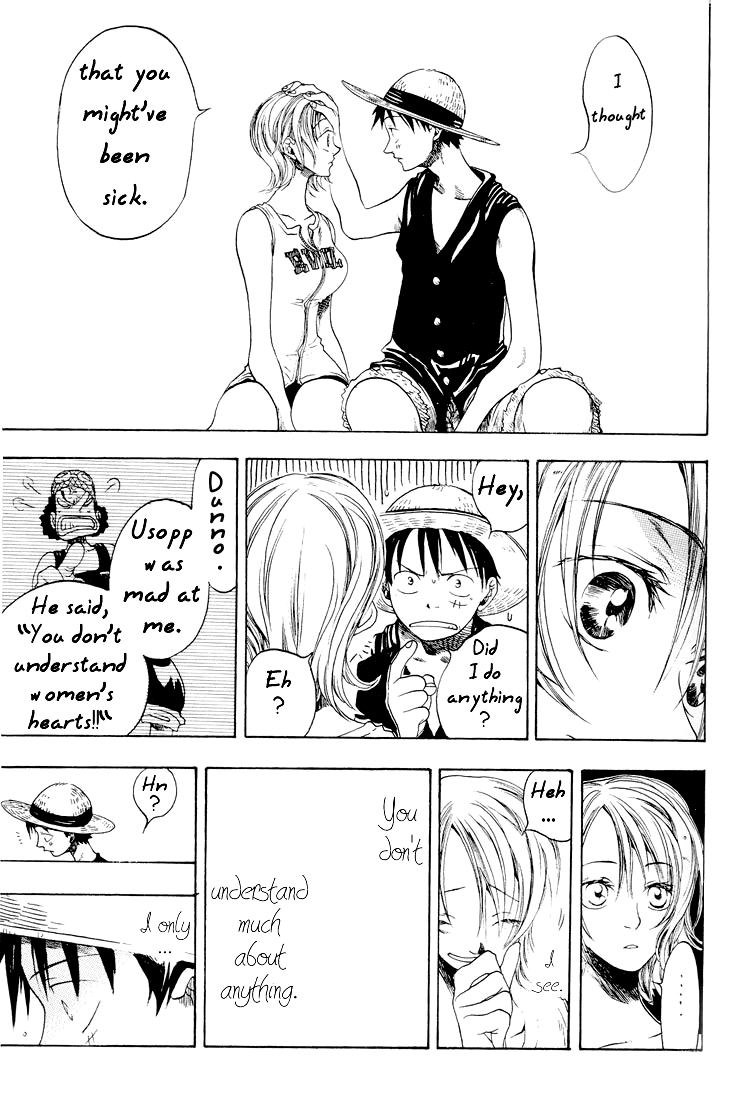 >>649Personally, that's my preferred Nami ship, but I don't object to her and Zoro either. Also, I could see Nami being a total gold digger if it weren't for the fact that she takes care of all the money the crew comes across.Also, this doujin is adorable as fuck.http://www.fakku.net/viewonline.php?id=2399