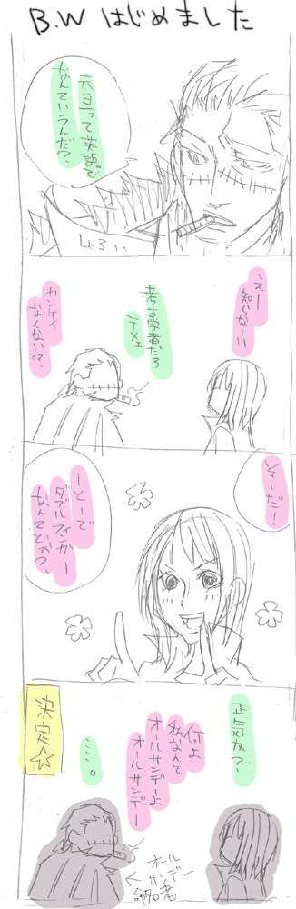 Okay, that Sanji/Usopp pic in the speculation thread got me going on an archive search for Bialy's art I hope you're happy having me sift through all that for the best of the bunch and reminding you just how ridiculous some of the fandom was BEFORE haki got explosively derisive.sage and spoilered for stupid and some slight gay.