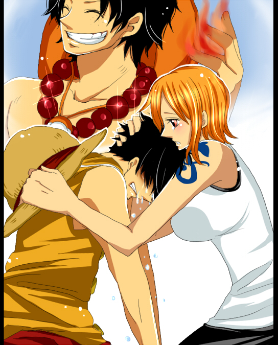 Zoro/Luffy/Nami works pretty well, in my opinion. Luffy and Zoro have this great dynamic, but neither of them could ever initiate anything. Nami, on the other hand, is much more proactive about this sort of thing. She has her reasons to want Luffy, and given her acquisitive personality she probably wouldn't mind Zoro as a muscular bonus. Luffy would just be happy to be special friends with his special friends; the boy is virtually drama-proof when it comes to these things.If you want to be nerdy about it, Zoro and Luffy have chemistry and Nami is an enzyme.