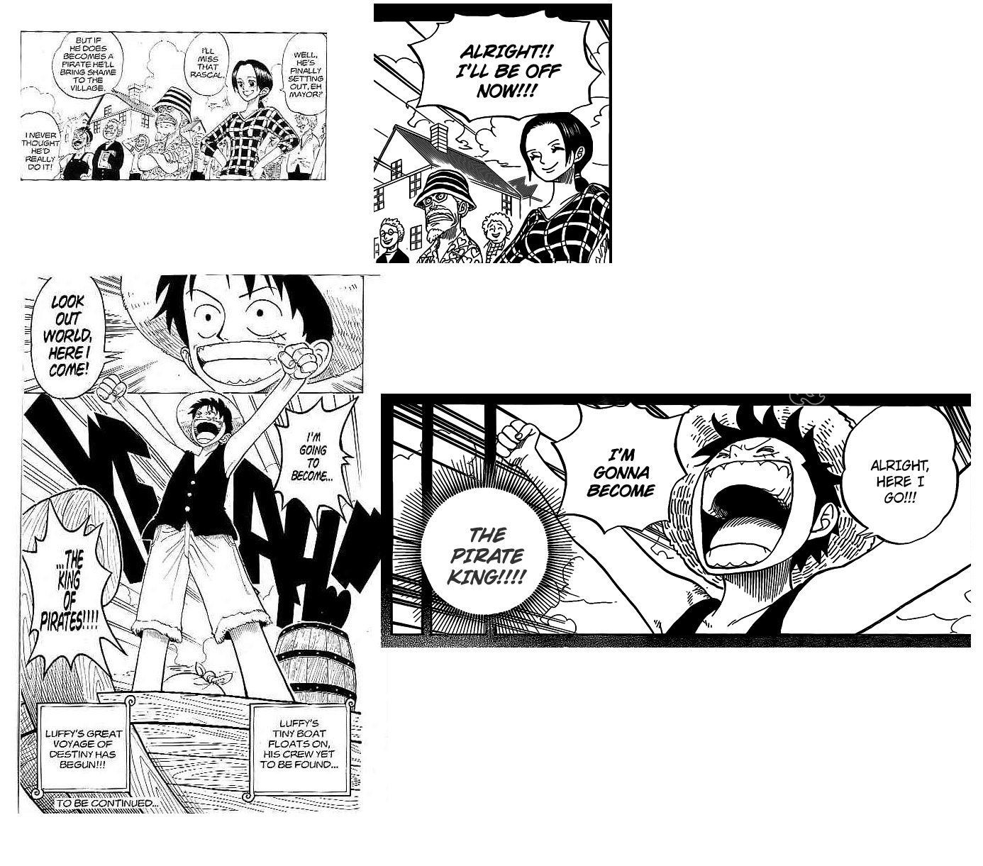 Poor Luffy. Nice to see everything come together though. I should look up the first chapter and see how it looked different back then.