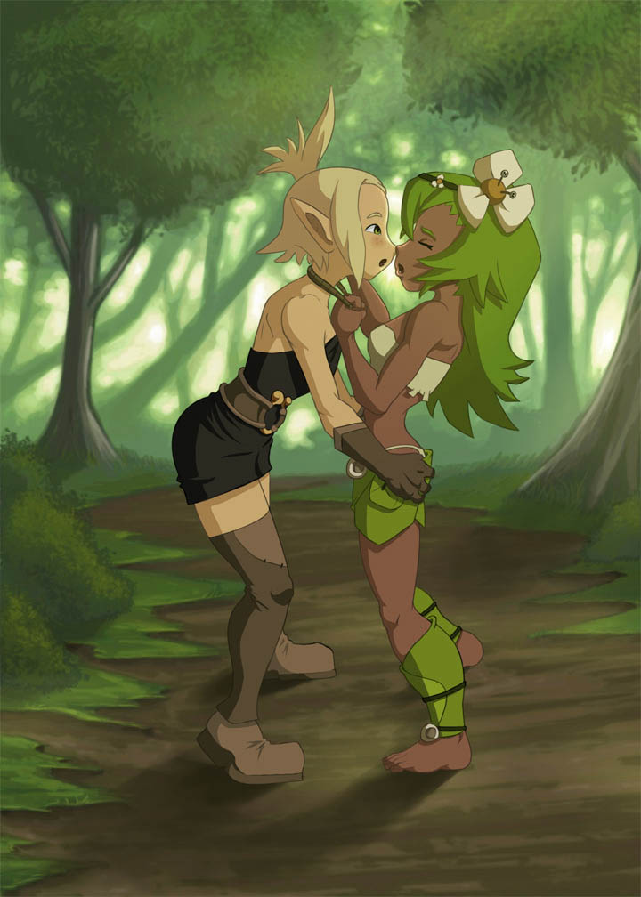 For a friend:BEGIN PART 2Boring. This whole mission was one big, boring disappointment to Amalia. Ever since Ruel had signed her and the others on as caravan bodyguards, she had spent the past two days and nights inside a covered wagon, counting the hours as they went by while she waited for the signal that they were being ambushed by the Srams. Amalia had given up any thought of being in a battle and resigned herself to making clothes and accessories for her doll using some spare material in the wagon. After she finished what must have been the tenth outfit for her childhood companion, she finally stopped and took notice of Yugo and Az’s antics. “Well, at least it’s not a complete loss…” Amalia thought to herself.The princess had taken a shine to the young boy after their first meeting in the Forbidden Forest, and after their most recent adventure in which Yugo had saved Amalia’s life finding the Ceverom Sap, she began to have strong feelings of affection for him; a fact that had not escaped her friend Evangelyne’s notice. Evangelyne had strongly opposed Amalia’s feelings, saying that they were unworthy of a princess of Sadida. But Evangelyne wasn’t here now, and now Amalia had a chance to get closer to her newest companion. The journey through the forest was going to be a long one: getting to the checkpoint alone would take about a week with the caravan’s pace. Amalia had plenty of time, but she decided that it would be better to start her advances sooner rather than later…“Yugo, will you come over here for a minute?” Amalia called. Yugo stopped his game of hide-and-seek with Az and gave a friendly smirk in reply, “Sure thing Amalia, watcha need?” Amalia devised a plan quickly, “I…I was wondering if you’d help me with something…” Yugo and Az tipped their heads simultaneously in curiosity, “Help with what?” Amalia picked up her doll and showed it to Yugo as an example, “I was going to make Evangelyne a dress, as a surprise for when we meet her again at the checkpoint. I noticed she liked the one back at the Tower of the Four Princesses, so I’ve been practicing my sewing. However…” Amalia took the clothes off of her doll, which in a show of humor pretended to cover itself in embarrassment, and showed them to Yugo, “My doll is too small to use as model, so I was wondering if you’d let me use you to make a full-sized one.” Yugo was surprised and slightly taken back by Amalia’s request, the thought of being dressed in girl’s clothes didn’t sound very fun to the juvenile’s mind. “Err, I’d like to help Amalia, but I don’t think-“ Amalia panicked and tried to reassure the boy, “Please Yugo? I don’t have anyone else that I can ask, and I can always count on you! I promise nobody will know about it, it’ll be just between you and me!” Yugo rubbed the top of his head in uncertainty, “Gee Amalia, I don’t know…”