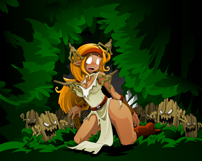 Meanwhile, Az had made it over to the money wagon and found Ruel asleep inside, taking a nap amongst a large pile of glittering gold coins. Az rolled his eyes and swooped over to the Enutrof’s ear, squawking in protest as he tried to get the old man to wake up and stop his snoring. Ruel yawned and groaned in protest, annoyed that someone had awoken him while he enjoyed his new bed. “Oh, hello there Az. What’re you doing in here, did Yugo send you?” Az chirped a series of undecipherable squeaks in response. “Oh, so he sent you here to keep me company did he? Well thank you for the offer, but I have all the company I need right here” stated the miser, as he patted the pile of gold beneath him. Az squawked in protest, determined to keep his eye on Ruel and find some way to keep him busy while Yugo and Amalia were doing their secret task. Ruel scratched his bald head in defeat, “Hmm… Well, there’s not much to do in here. Oh, I know! Say Az, how’d you like to help me count all these Kamas? You’re a smart little Tofu, so I’ll bet you know how to count, don’t you?” Az cheeped happily in response, eager to play Ruel’s counting game.“Okay then, I’ll start on this side of the wagon and you start over there. We’ll put all the Kamas we’ve counted in a pile in the middle, and then add both our sums when we’re finished. Sound like fun?” Ruel extended a finger to the little avian, to which Az took it one of its feet and the two shook in agreement. Ruel grinned in amusement and announced, “Okay then, let’s get started! One kama, two kamas, three kamas, four kamas…”As the caravan moved slowly through the forest and the four companions engaged in their own activities to pass the time, many eyes were watching them from both sides of the woods. They had been tracking the caravan’s progress and were waiting for the right moment to strike…END PART 2