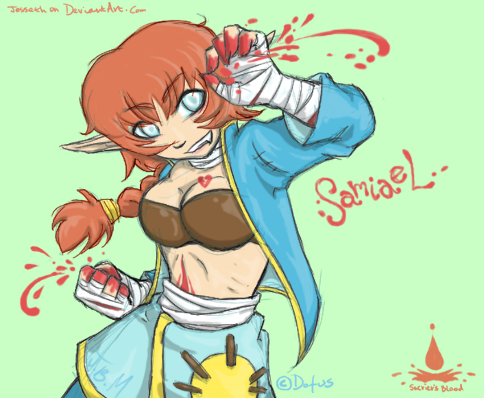 fyi the dofus sacrieurs aren't tattooed for some reason. The tattoos were added in Wakfu.and fyi fyi i don't have a redhead fetish. I just picked what i feel is a sexy char design.