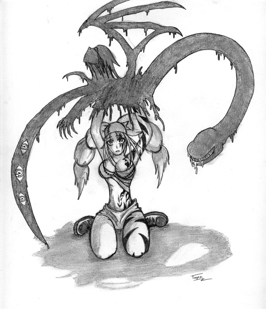 It was warm, yet wet. The summer rain fell upon the forest like a gentle shower; creating a symphony of sounds as the water reached the leaves of the trees. The sound was a soothing melody to Cathra’s ears, and made her yawn drowsily as she stretched her tanned body across the tree branch. Her skin tingled and glowed with joy at the bath it was receiving, happy to finally have the last two days’ worth of sweat and dirt washed away. The voluptuous Sacrier glanced over at the giant leaf on which she had chosen to keep her things; making sure that her weapons, armor and clothes would be safe and dry after the raining had stopped and her bath was finished. After she was satisfied that they were completely covered from the elements, Cathra resumed her daydreaming as she lie naked in the rain; dreaming of her beloved Sylus.