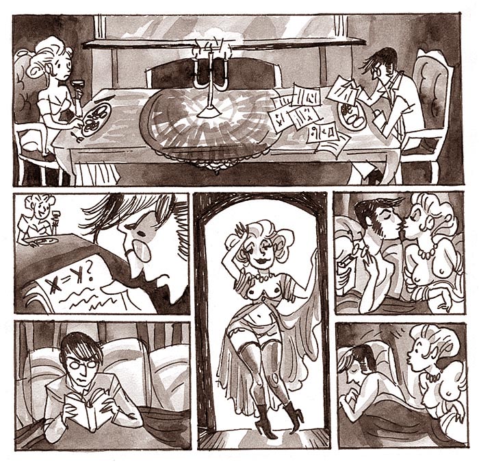 Kind of a cop out, saying, "Oh don't worry the husband was WAY too busy to pay attention to his poor wifey." in retrospect. The author should've shown the wife's growing distance from her husband. Who draws this? The storytelling style feels very feminine but you can never be sure about that.