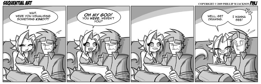 So I've heard that Jolly Jack used to draw Sequential Art porn about 2 years ago, before deciding to keep them relatively clean. Apparently starring Art, Kat and Scarlet in various scene that go beyond the cheesecake that's still around.It was probably a troll but I'm curious. Has anyone seen anything like that before?