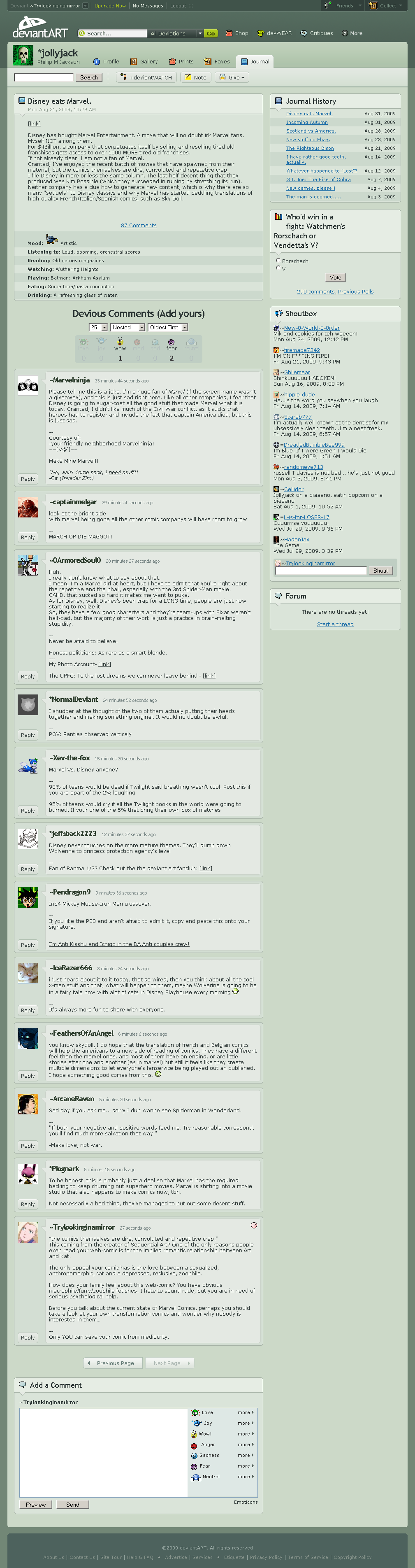 JJ's been saying a lot of things lately (some smart, some not-so-smart), with that whole air of "I know what I'm talking about, fool--I draw a WEBCOMIC" that made Scott Kurtz and others so impossible to enjoy. He's turning his dA page into a soapbox and going out of his way to alienate people. Has that EVER worked well for an artist?