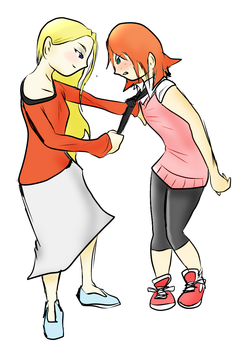 >>47677“You’re getting awfully defensive here, groupie.” Whitney chided with an arrogant tone to her voice. “I’m not defensive, I just don’t want you hurting Tony,” Pepper narrowed her eyes at Whitney. “And stop calling me groupie,” she said, increasing the tone of her voice. “Then maybe you’re just jealous.” A sly smile rose to Whitney’s face.A look of bewilderment overcame Pepper’s face. “Jealous? Of what? I told you Tony’s just a friend.”“Jealous of all the attention everyone is getting but you,” Whitney teased her.Pepper still looked confused. “Attention?”Whitney took a step towards Pepper, who attempted to take a step back, but felt the window ledge press into her lower back which abruptly halted her retreat.“Tony’s been my friend since we were kids, and now Rhodes has taken an interest in me. Correct me if I’m wrong, but they’re the only real friends you have.” Pepper felt uncomfortable with Whitney being so close to her and having nowhere to retreat to.“So what if they’re my only friends?”Whitney leaned her face in close to Pepper’s, her voice suddenly changing to a softer tone. “With them preoccupied as of late, that must make you feel a bit like an outcast.”Strands of Whitney’s hair fell forward with her shift in movement, flicking across Pepper’s bewildered face. Pepper could smell the sweet aroma of lilacs on the blonde girl, no doubt from some expensive perfume or hair product. The situation was becoming increasingly uncomfortable for the usual fiery redhead, but at the same time Pepper couldn’t helped but be soothed by the calming aroma that Whitney seemed to emanate from her elegant figure.Pepper began to felt extremely flustered. She was not use to having someone in such close proximity to her, especially a girl whom she harbored such strong disliking for. When Pepper failed find an adequate response, Whitney continued.“I’m right, aren’t I? You’re just upset you’ve been shut out from them.”“Th-that’s not…” Pepper could only stammer out a weak excuse, unsure if she was caught off guard by Whitney’s suddenly aggressive behavior, or the possibility that Whitney might be right. It’s true her only two friends, whom she had just befriended a few months ago, have been keeping things from her and ignoring her as of late. She did also feel as if she was being replaced by Whitney, especially in Tony’s life.Before Pepper could find an answer to complete her response, Whitney slowly reached out her hand and traced a finger up the middle of Pepper’s shirt, stopping at her chin which she playfully flicked.“Don’t worry, groupie. If attention is all you need, then I can help you.”Pepper’s heart began beating faster. The entire situation was becoming too uncomfortable for her, and she could feel feverous warmth beginning to rush to her face in response to Whitney’s touch. Pepper decided she should probably head home to think about what Whitney had said, but before she could leave the events in the hallway began to spiral out of control.Whitney suddenly leaned and pressed her lips against Pepper’s, embracing her in a soft kiss. Pepper’s heart raced when their lips made contact, and felt that it would pound right out of her chest if it beat any faster.What the hell is she doing? Pepper could only find herself thinking a response, as her body refused to move and break the kiss that the two girls were sharing. After a few moments which felt like an eternity, Whitney withdrew her face from the redhead, but only enough to allow herself to talk.“Feeling better now?” Whitney teased. “Wh-what?” Pepper said meekly, her mind unable to process the events that had just happened. Whitney seemed dissatisfied with the results, and lowered her head slightly so she could resume her kissing, only on the side of Pepper’s neck. She gently nipped and pecked at the red-head’s soft skin, slowly moving downward as she did so. When she reached Pepper’s collar-bone, her nipping became a bit more aggressive. Her teeth gently teased the sensitive skin, careful not to hurt her subject and instead only give her a strange and wonderful prickling sensation Pepper was free to talk, but found no words coming out of her mouth. As confused as she was about Whitney’s performance, a part of her didn’t want her to stop. Her legs began to quiver and feel weak, so she reached behind her and braced herself by placing her hands on the window ledge. She gently shut her eyes and found herself beginning to pant lightly from the strange warmth she could feel building up inside her body. Whitney stopped, but only to ask Pepper if she wanted her to stop. Pepper could barely hear the words over the pounding in her chest, and when she failed to respond, Whitney resumed with her work.Even though her eyes we closed, Pepper could feel one of Whitney’s hand beginning to grope at her chest. Pepper never had large breasts; in fact hers were a bit on the petite side, but they were still noticeable in the clothes she wore.Whitney’s touch was gentle, yet exhilarating. Her kissing, as well as the gropes on Pepper’s left breast, began to speed up. When Pepper let out her first audible moan, Whitney knew that Pepper was enjoying herself. The blonde slowly retracted her hand, but only so she could reach under Pepper’s dress and resume the groping against her bra. After some blind guessing, she managed to pull the cup to the side and reach her prize underneath.Pepper let out another moan from the sensation of Whitney’s bare hand making contact with the sensitive skin of her breast. She had played with her own breasts before, but the feeling of someone else massaging them was an entirely new sensation for her. Whitney’s hand was soft and gentle to the touch, and she wondered if that was how it was suppose to feel, or if it was just the touch of another girl.Satisfied with the results so far, Whitney decided to test 