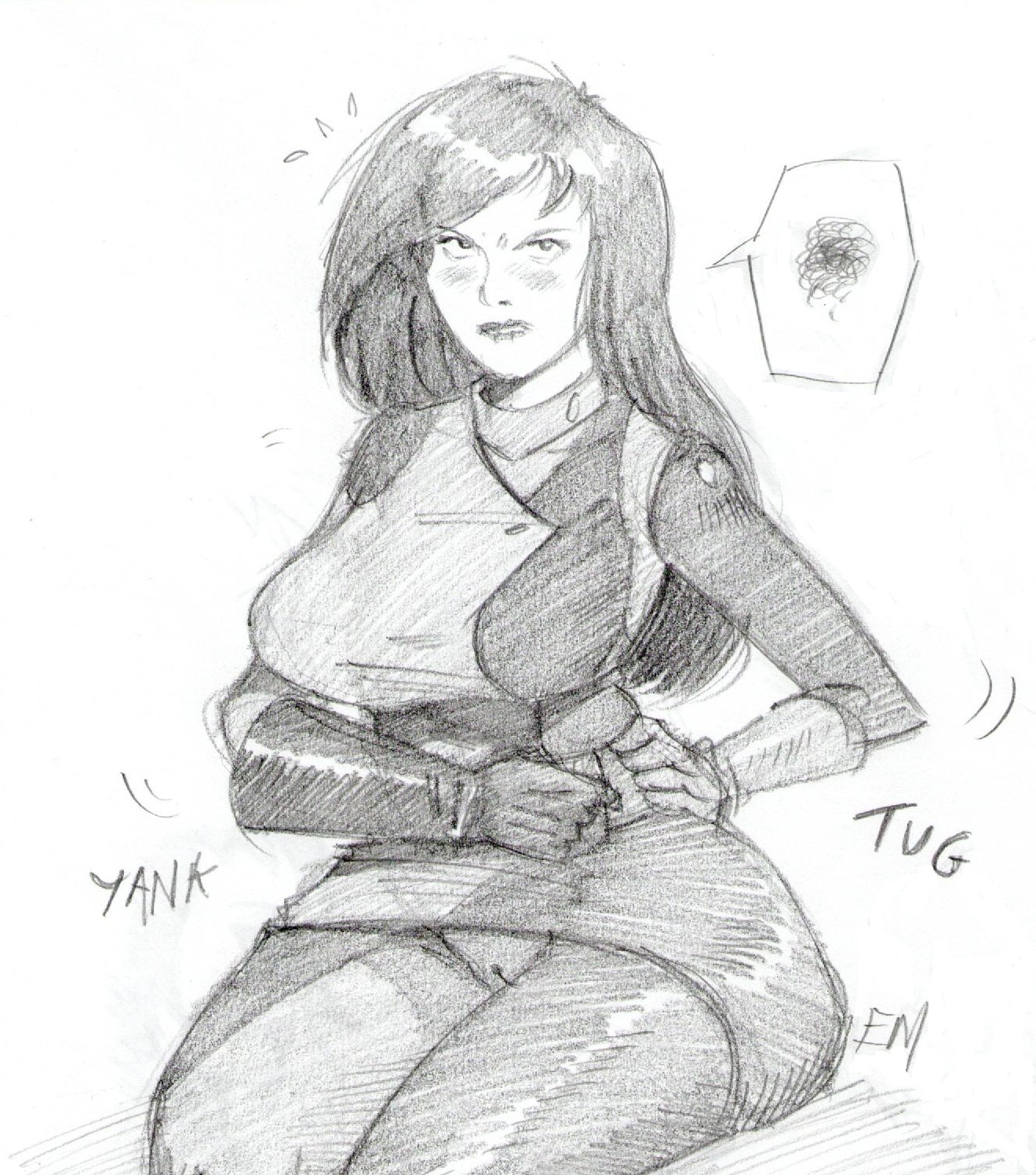 Quickie I did last night of a slightly meatier Shego trying to adjust her belt
