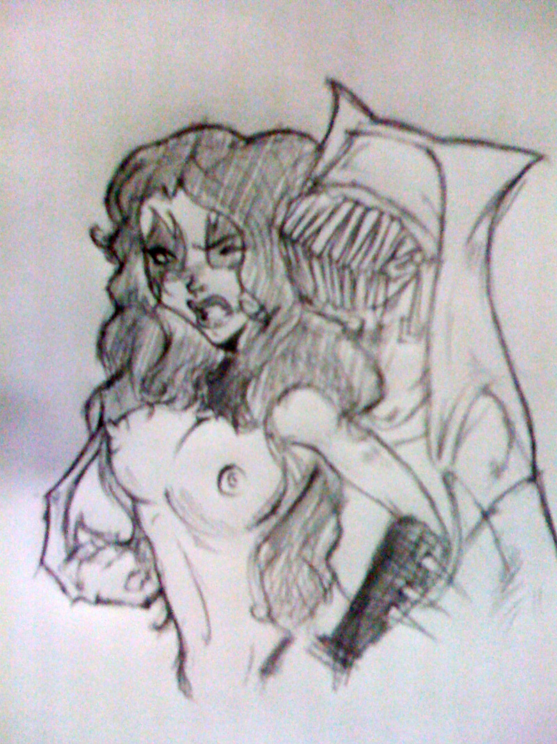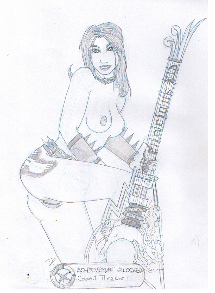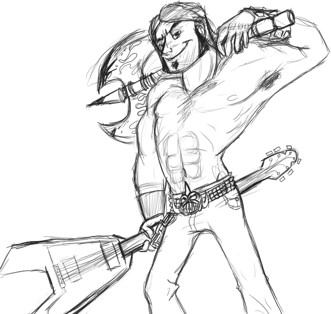 Practice pic, since I haven't drawn anything Brutal Legend and porn in months. Maybe when I've practiced with the Warfather s'more, I may do something with him and a Battle Nun with a bit of Overblesser. Watching. Mournfully. Lamenting his inability to get any.