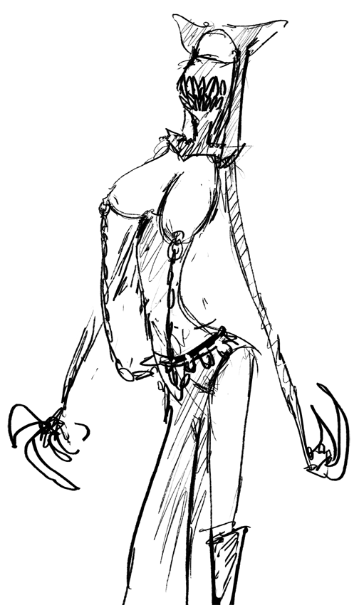 >>61250Zipper-y? A shit ton of piercings? barbed? Spikey? The game does have a lot of spikes in it.
