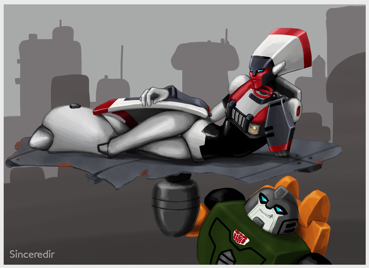 >>60865Huh... I never pegged that artist as a guy. All the female fan-characters paired up with canon characters, the fem-seeker commission work, and the whole lactating energon thing lead me straight to fangirl territory there.