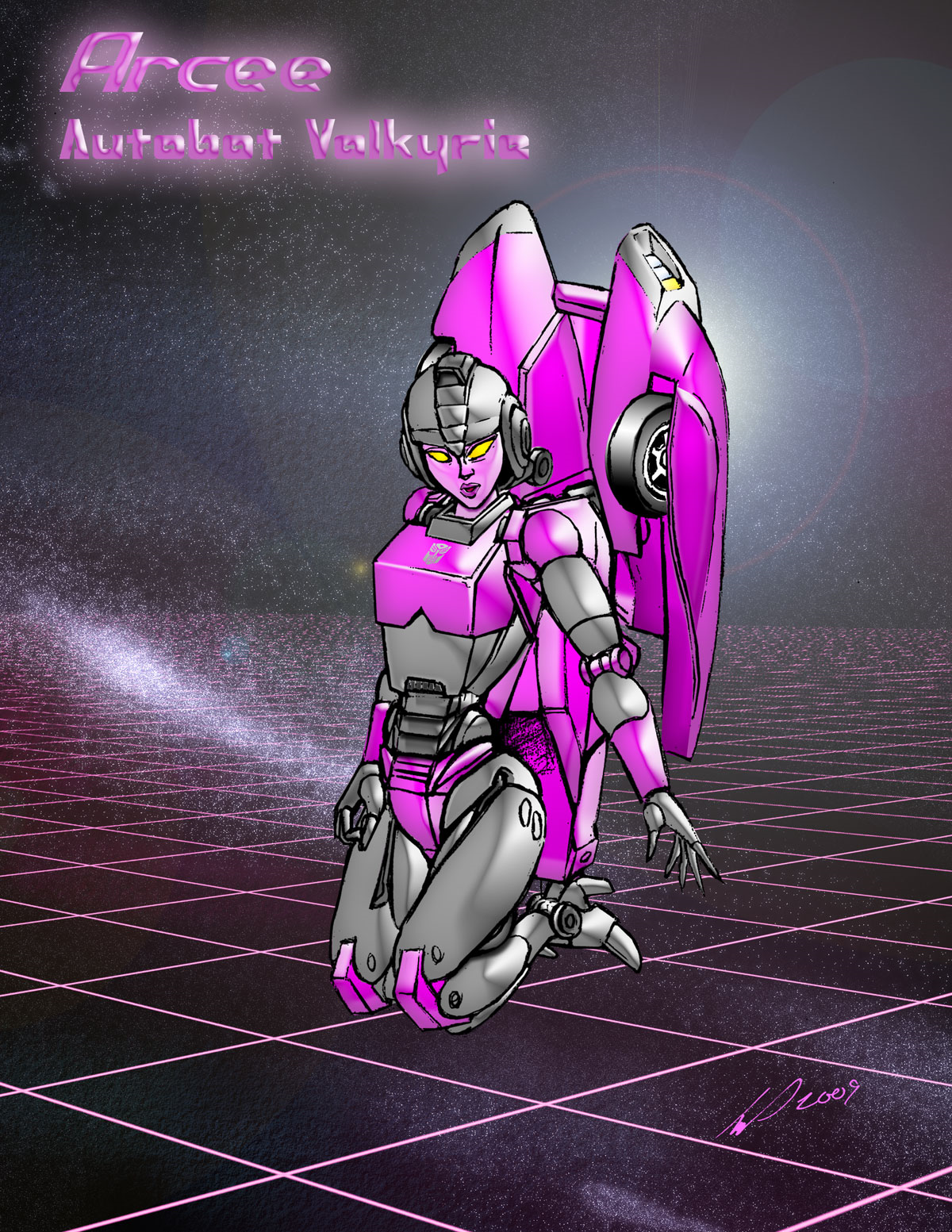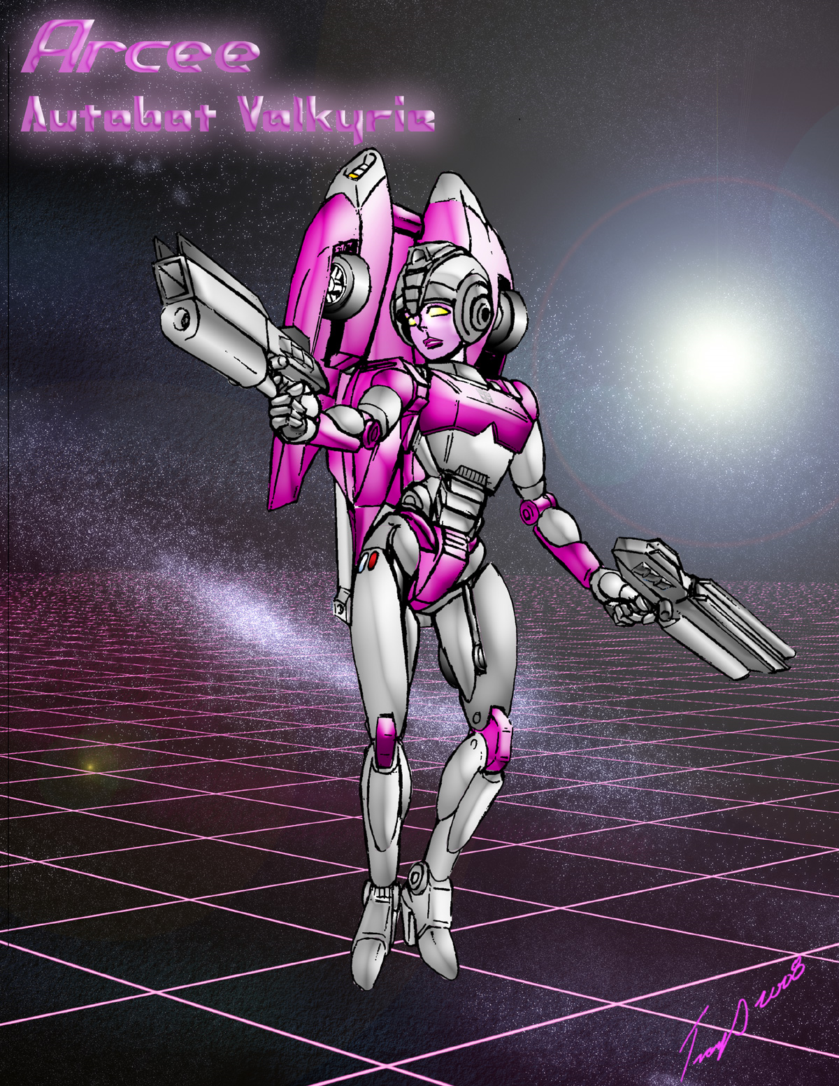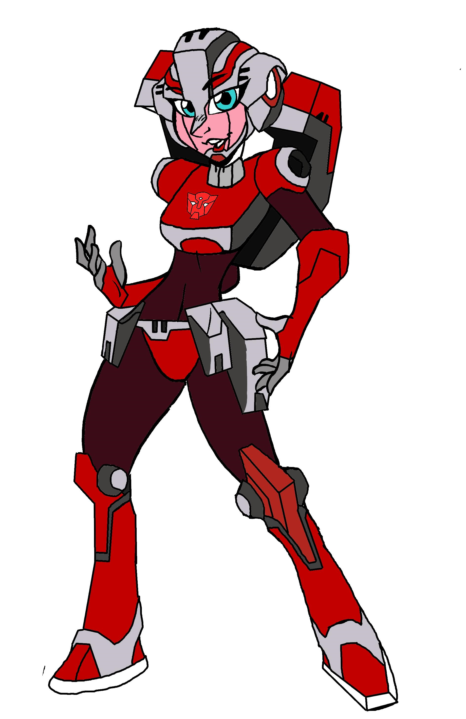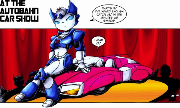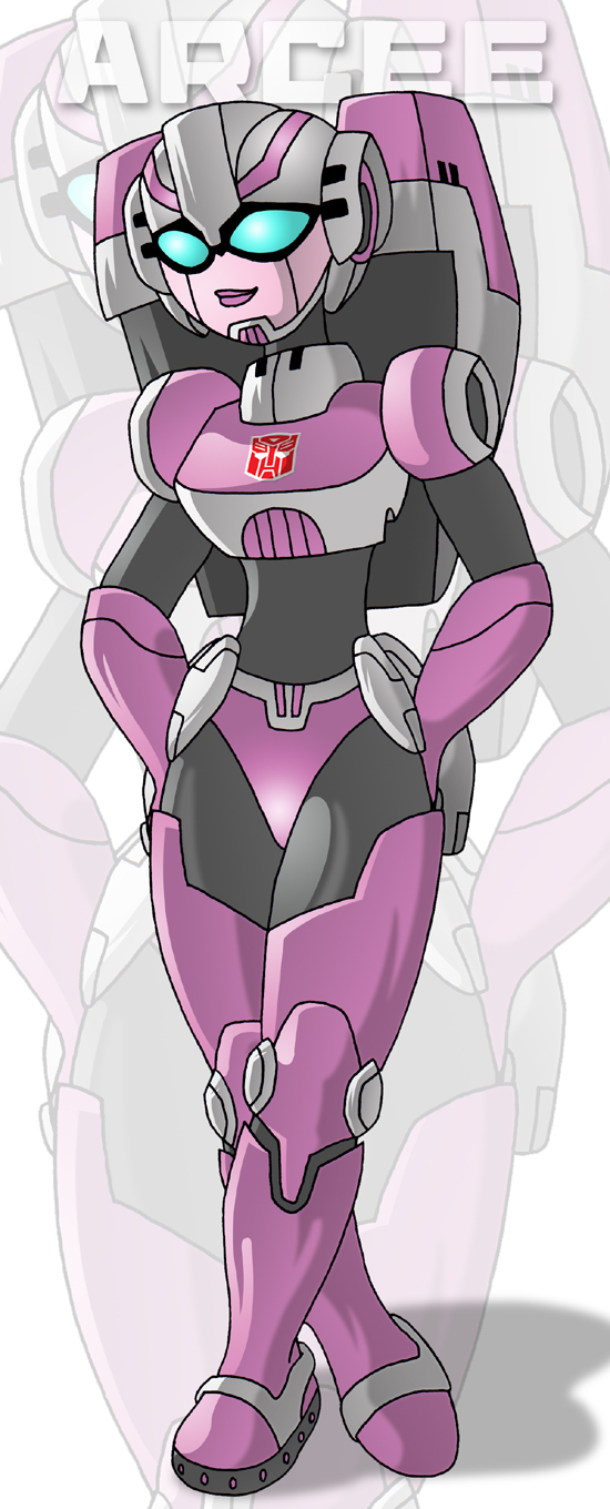 Arcee is supposed to be TFA style here, but the artist used the G1 style instead.