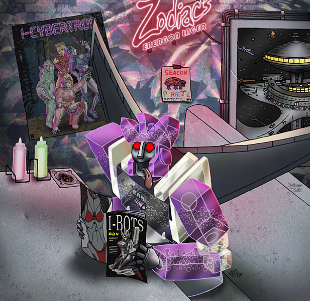 >>71891This reminds me, I've had this idea for a pic in mind, but it's probably way out of my skill range to even attempt.It's basically the interior of Maccadam's Old Oil House, and it's a Cybertronian strip club, with the highlights of the pic being Lickety-Split as sort of a Hooter's girl waitress and a femmebot yet to be decided up working the pole (maybe Clipper from the Allspark Almanac 2? she's the pink bot on the Maccadam menu. Looks kinda strippery to me) Also, the pic would be peppered with various Maccadam clientele. I'm thinkin a bunch of lowbrow bots like Rattletrap, Ironhide, Brawn, Beachcomber, etc.
