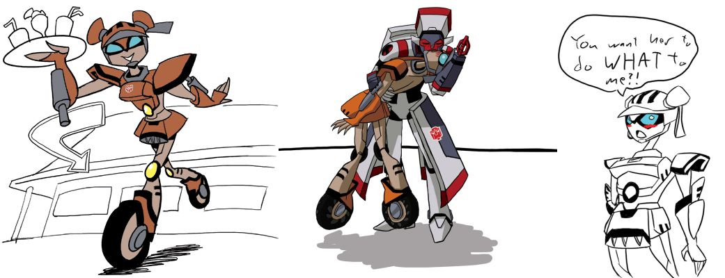 >>72546Alot of people are idiots too.That said, in the right hands, those designs COULD be good. Ever seen Markerguru's TFA pics? And the toys for the line turned out excellent. But Derrick Wyatt is a creatively stunted idiot who couldn't draw his way out of a paper back. He has good ideas, like Wheeljack's "facial hair" and Sentinel's design homaging the Tick, but he needs someone with sense to take his scribbles and turn them into something pleasing to the eye.Hell, he's even admitted that he can't draw vehicles on his Formspring. This is the guy they thought would be good to design Transformers? A guy who can't even draw cars and trucks?