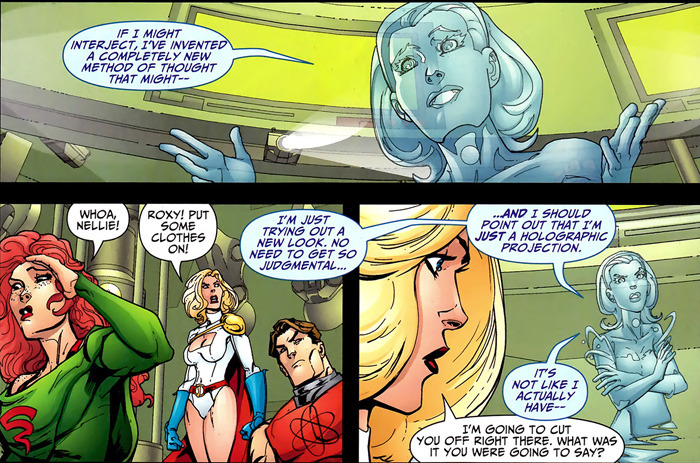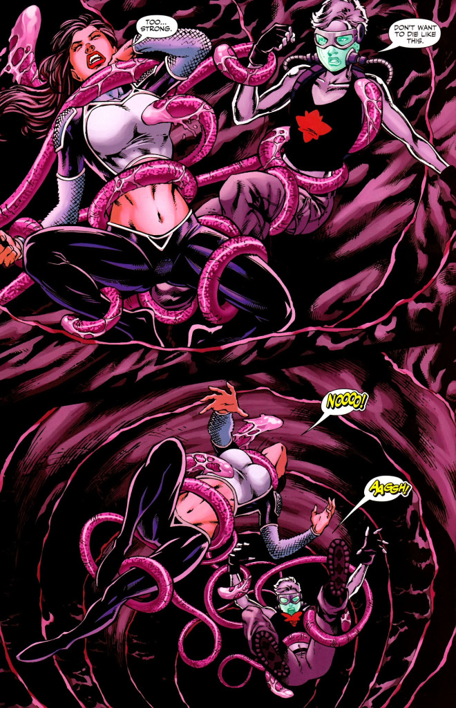 requesting the logical continuation of this scene from teen titans with aquagirl and bombshell