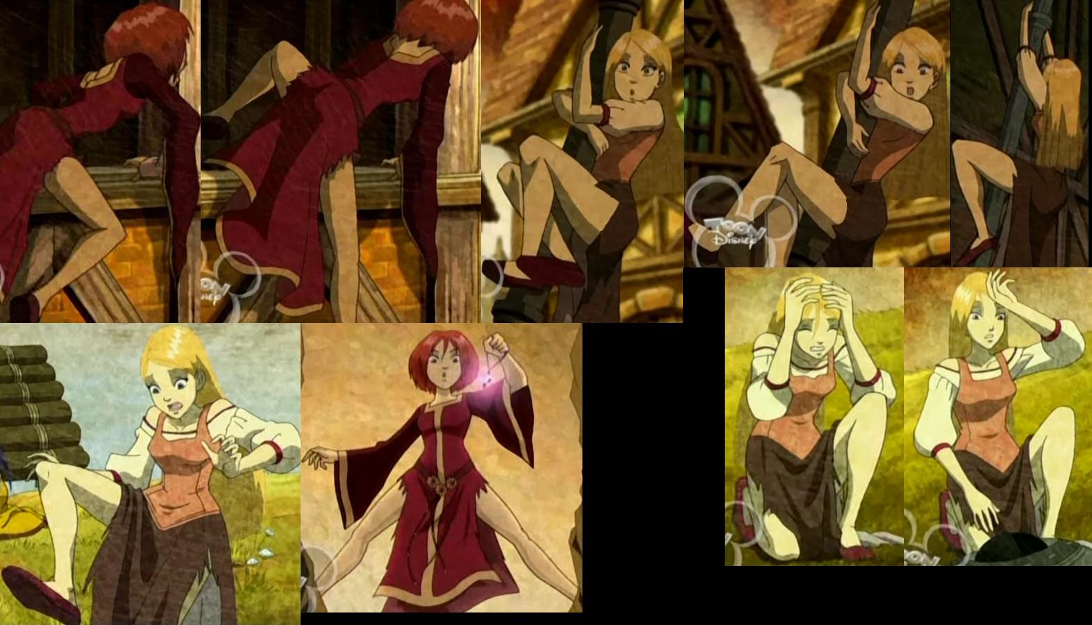 You know, there's an episode of Witch where Will and Cornelia get stuck wearing medieval dresses, and they tear them up so they can run away from some bad guys. Wouldn't mind seeing them get some action while in those torn dresses (I have a thing for legs)