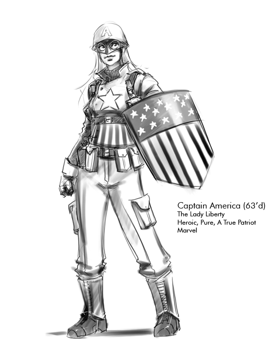 >>63230We tried to figure out how a female Cap would work in a +/co/ thread a while back, and we ended up with something like this:Stephanie Rogers was a very patriotic girl who wanted to help her country very much. However, she is not content to do her part at home; she wants to be out there with the troops, fighting the Axis herself. So she disguises herself as a young man and tries to join the military, but since recruiting offices involve medical examinations and whatnot she is quickly discovered.Meanwhile, government scientists are working on a chemical formula to enhance the human body to its pinnacle. However, even after years of research the serum still has one major flaw: because it requires a certain concentration of estrogen to react properly, it is useless if used on male soldiers.At this point, the people involved with the project find out about the "Steve" Rogers incident and someone gets a bright idea: here they have a young woman who is not only devoted to her country but also moderately attractive with blond hair and blue eyes. They decide that, with the help of the serum, she would make the perfect mascot, capable of surviving on the battlefield while providing the men with morale boosts. So they injected Stephanie with the serum and gave her an appropriately showy costume, a symbolic yet functional signature weapon, and even a codename: Lady Liberty.The original plan was for Lady Liberty to stay in the camp of whatever regiment she had been deployed with, engaging the enemy if necessary but never taking part in the big battles. However, with her enthusiasm still intact and her body empowered a dozen times over, Stephanie found herself routinely going above and beyond her intended role. Eventually, as both she and her superiors became more confident in her combat abilities, she gained a codename that carried much more weight: Captain America.The rest is history: yada yada Red Skull yada yada frozen in ice yada yada Avengers yada yada lesbian subtext with Iron Woman.