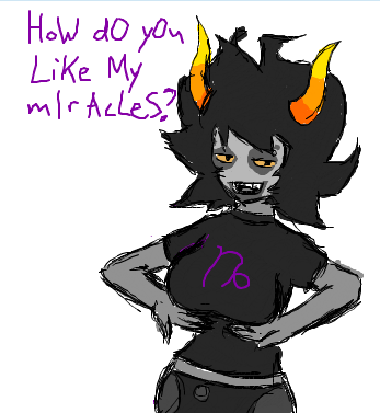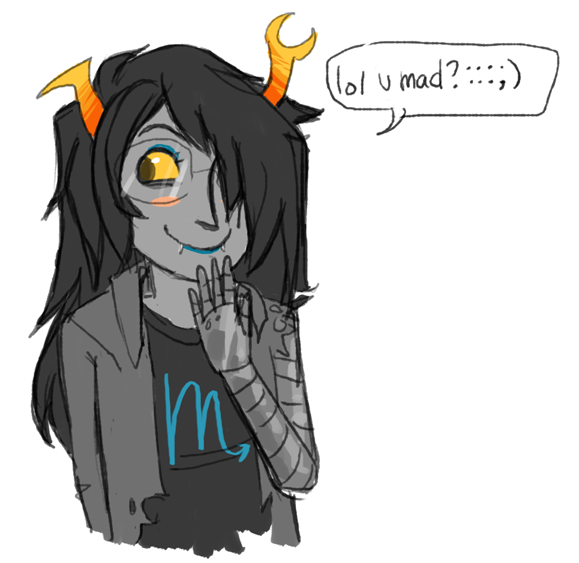 >>68668I'm pretty sure that this is the first-ever application of Rule 63 to one of the Homestuck trolls. What the fuck took them so long?Alright girls, we've still got nine trolls left with their genders unbent. Get to work!