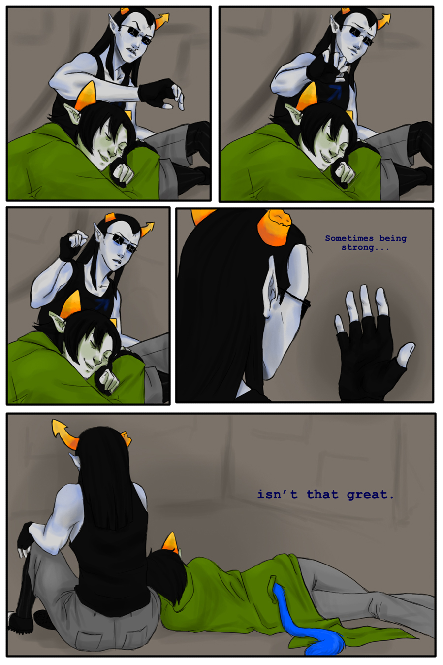 Also this comic, done by the same artist. Usually, I intensely dislike Vriska. She is a giant whiny bitch, etc etc. But this. I like this a lot.
