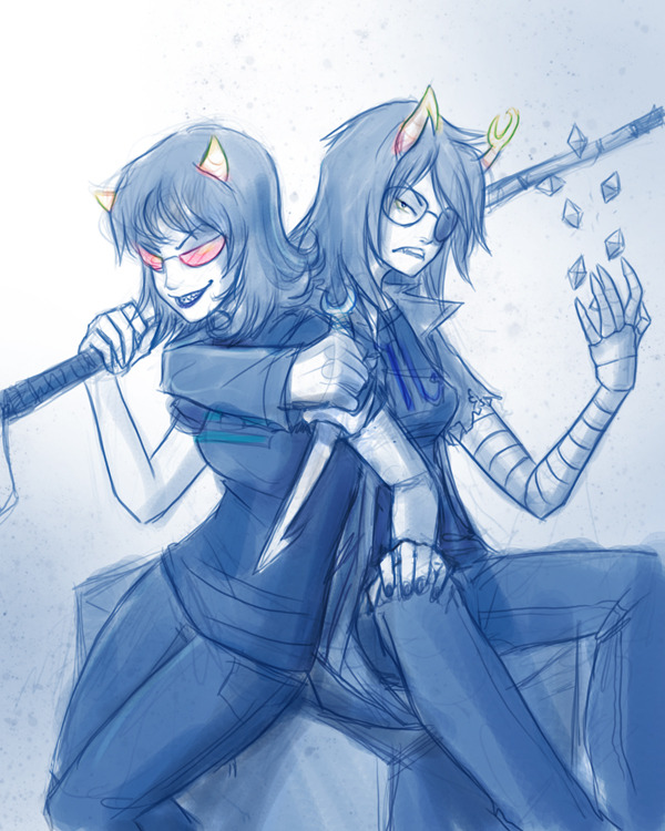Here's some REALLY nice art that was on the forum. I kind of like this implied Terezi/Vriska.