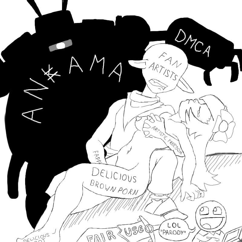 >>72768>>72779The French laws also include a parody-clause, but I'm not a lawyer, so I'm not quite sure it is as bullet-proof as the DMCA. Theorically porn fanart is covered by that clause, but who knows how a twisted lawyer can sometimes bend the rules and their interpretation to find the loophole.