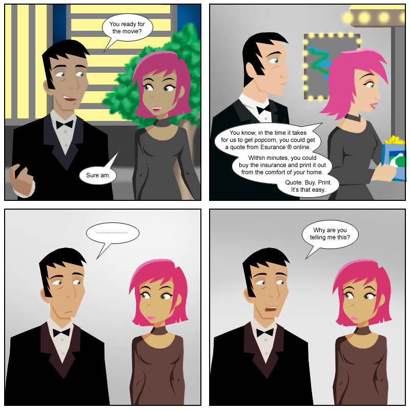 Hilarious. And yet sad, because Erin Esurance is dead and thus there will be no more rule34 of her. ...Oh, hey, some new KP and MLAATR porn! And is that a new Wuya DAT ASS pic? Oh yeah!Fuck you, Esurance. That ZONE flash will outlive you all.I think the "Clippy" survey is bullshit. People know Erin; they probably don't know what she was selling. I mean, my God, look at the EE "Bollywood" commercial; it's fun and pretty and...WTF is it about? The suits who greenlit that couldn't sell water to a man dying of thirst.