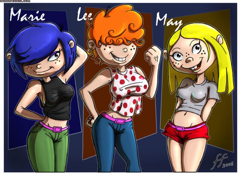 A little gift from your half-pint friend's bro. But enough about him, let's get started with some learning!" Edd protested, flailing about as hard as he tried, but the restraints were bound too tight, too well. Marie's smile grew and she leapt onto the table, straddling Edd at the waist. She leaned down and began kissing Edd's face, as hard as that was with him struggling. "All right, Mr. Hard-to-get. Let's see if those mags knew what they were talking about." With that, Marie's kisses began to move down from Edd's face to his neck. She suckled on his neck, sending a shivering wave across Edd's body. It was a strange feeling, as unwelcome as it was. He couldn't imaging the amount of washing he would have to do to get rid of this. Marie let her long, blue hair glide across Edd's neck as her tongue inched its way down his neck to his chest. She tongued and played with his thin chest, letting the tips rise a bit and grow sensitive."What are you doing?" Edd asked, his voice fluttering a little. Marie craned her neck up."If those mags were right, something you'll never forget." And with that she spoke no more. Edd continued to protest, but found his voice growing lighter as Marie's tongue waved across his body. He felt strange, although the feeling was becoming less intolerable. In fact it was growing almost likeable. The blue-haired girl scratched her teeth lightly against his exposed skin, kissing and caressing with her mouth. Slowly she swayed her head to the edge of Edd's swim trunks. She hummed to herself pleasedly. Edd wondered what it was she'd seen when she lifted her head. Risen in the air, Edd's lower extremities had swelled. He was stunned, not realizing it had even happened until Marie showed him."What did you do?" his voice barely a whisper. Marie moved her hips down to straddle him at his midsection. She leaned her head down,"Everything," and kissed him. Edd didn't fight it. He at first too lost in conflicting messages to resist. Everything he'd known about Marie Kanker was, on the one hand being proven true, and yet, at the same time, falling apart. He'd known she was desperate to have him, and knew she was controlling and ill-tempered. He knew she was his near-opposite. What he didn't know, until now, was that he liked it. He liked the dichotomy that was apparent between them. He liked the way she'd been different from her sisters like he had been from his friends. He liked Marie. As her hips bore down on his, he aided in the kiss now, instead of resisting or remaining neutral. Marie felt Edd's tongue enter her as much as she did to him. Something went through them that neither of them needed to say. Marie reached into her nurse’s hat and pull out a key. She reached up and released the restraints on his arm. She then tossed the key aside. He embraced her, pulling her tight to him, feeling her body through the false clothing. He ran his hands through her hair and pushed her face into his, not wanting to break their first true kiss.