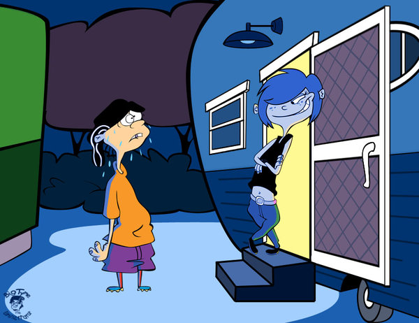 Edd danced in and out of consciousness, the sensation of being dragged entering his mind. Thoughts of being taken to some den of eating assailed him, although he could not gather enough of his senses to scream. Finally, he heard distant voices, although they were coming from someone close. The identity was unknown to him, though the voices sounded argumentative. Blackness filled his vision once more. The air was cold around him as it tickled his skin, moist with perspiration. He opened his eyes, and found that the fog of being knocked out was fading fast. He looked around and saw a peculiar sight. All around him was makeshift medical equipment. False ECG machines made out of broken televisions, blood pressure cuffs made of paper and water hoses, scalpels fashioned out of butter knives."Finally, you're awake." The voice was high, with a hint of concern mixed with being held up. He turned, partially. Edd moved his arms and legs and found that they were strapped to the table on which he was laying. Had he been kidnapped by some horrid butchers who wished to replace their body parts with his? When he turned his head, he saw that he would only be so lucky were that the case. Standing in a mock-nurses outfit made out of an old tablecloth and some red markers was Marie Kanker, her candystriper outfit mottled with holes.Unhand me at once, Kanker, or I'll...""Zip it, egghead!" She cut him off. "Look, I figured I'd do some homework with you." This took him off his footing, so to speak."I beg your pardon?""Yeah," she said, traipsing nearer."Well, what do you need help with? Surely you could have just asked me instead of absconding with me in the dead of night! Is it mathematics? English studies?""Wrong, genius. Think a little closer to today." Edd wished that he hadn't."I've come to expect a lot of things from you, Kanker, but if you expect that I'll do THAT, you're as wrong as they come!" She smirked, a wholly frightening act to him."C'mon, double-D. It'll be like a science experiment. You like those, right?" Of that she was correct."Of course, but I could just find books that could teach me just as well." She reached for a pile of literature on a table behind her. She flipped open one of the magazines and spread it open in all it's glory: men and women in the most lurid and venal positions doing...that in a myriad of way. Edd tried to look away, but had a hard time of it when Marie shoved the erotic magazine in his face.