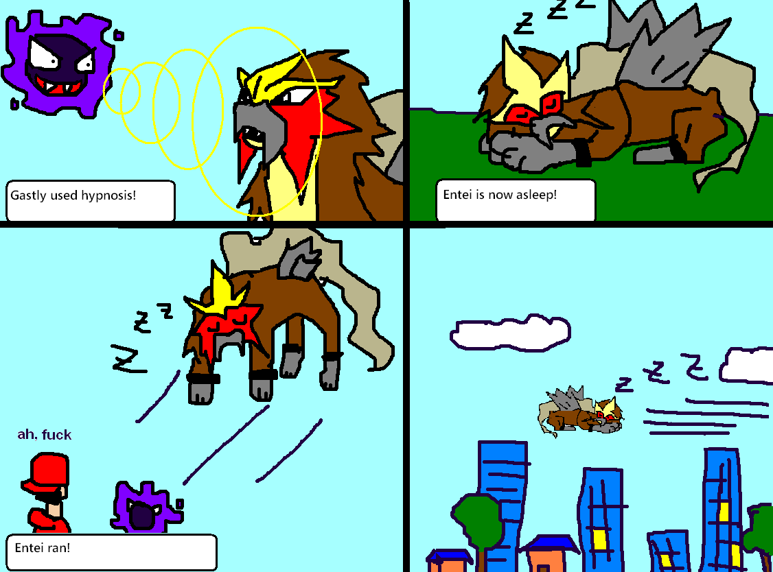 Where's that comic where someone is trying to run from Entei because they're low on HP, it doesn't let them, but then it runs away itself?