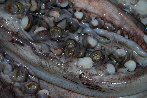 >>4672I belieeeeve... any squid in the humboldt+ size range has "toothed" tentacles. With Humboldts and giant squids, each individual sucker has a ring of teeth, colossal squids have big claws that they can swivel independently.