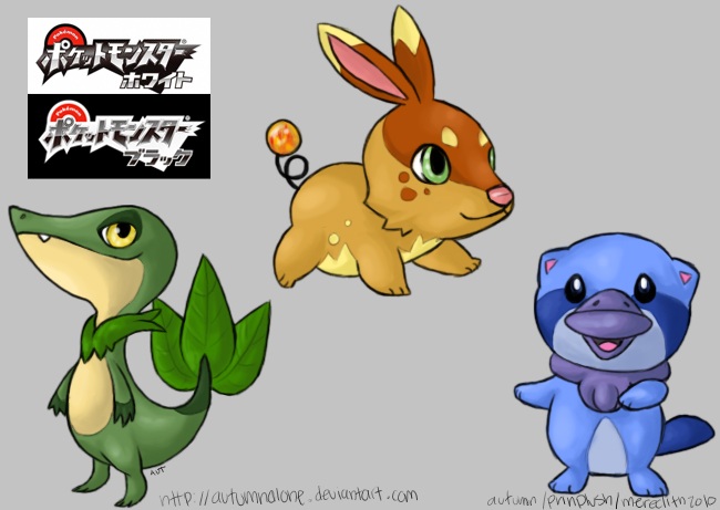 Assuming they're in the proper order...The grass-type will be yet another reptile of some sort. The fire-type will start off as something out of the Hundred-Acre Wood and then become a godless killing machine of a bear. That water-type better be a platypus.