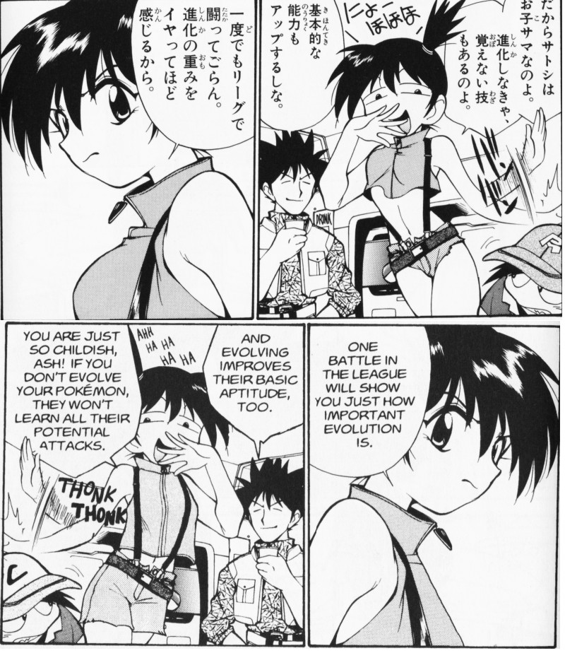 I never support censorship, certainly not over something as silly as a tank top and a some short shorts. The hot springs was even sillier, considering they had THE EXACT SAME SCENE in the anime's Cinnabar arc.I actually recall them taking a scene with Ash and Gary's Sister and covering the whole page except their heads just because they were both in the same bed (it wasn't even suggestive as I recall, she was just reading to him or something).