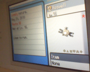 I can't believe it, I've run into a shiny TWICE in SoulSilver, and something that's not totally useless either! I love my luck <3Oh, his name is Gauss now though.